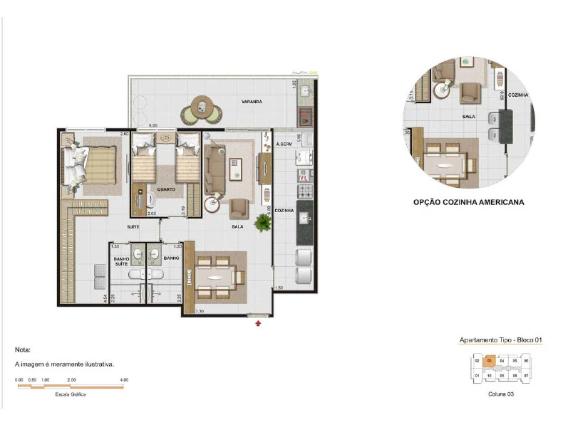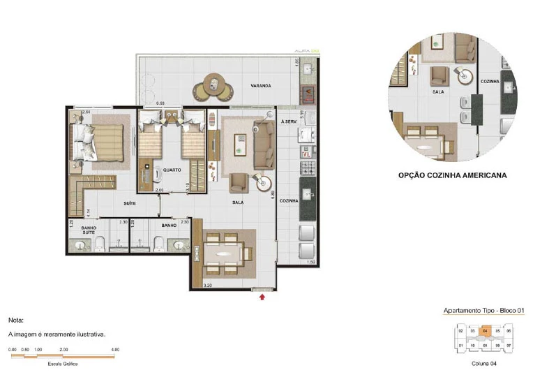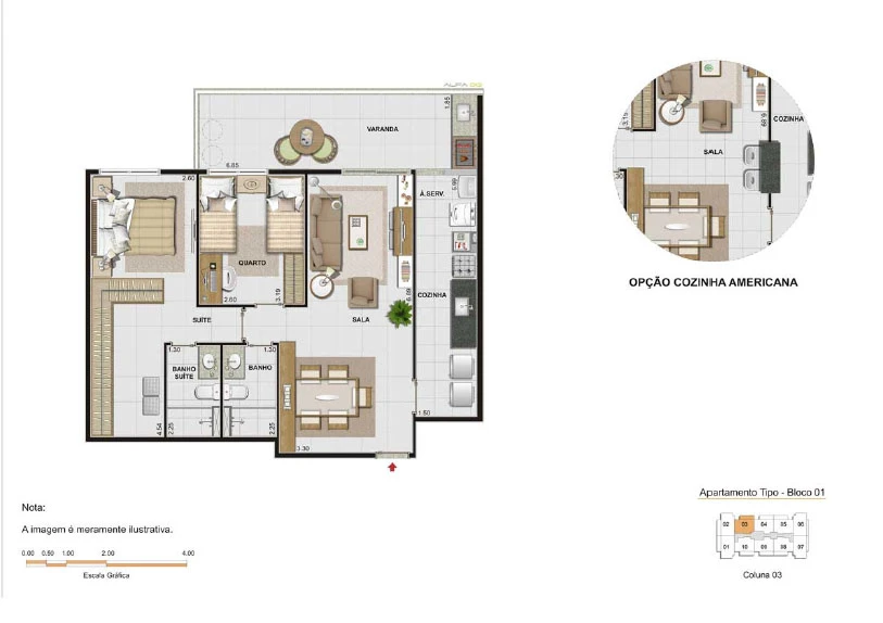 Apartamentos de 3 quartos com 1 suíte 81m².
